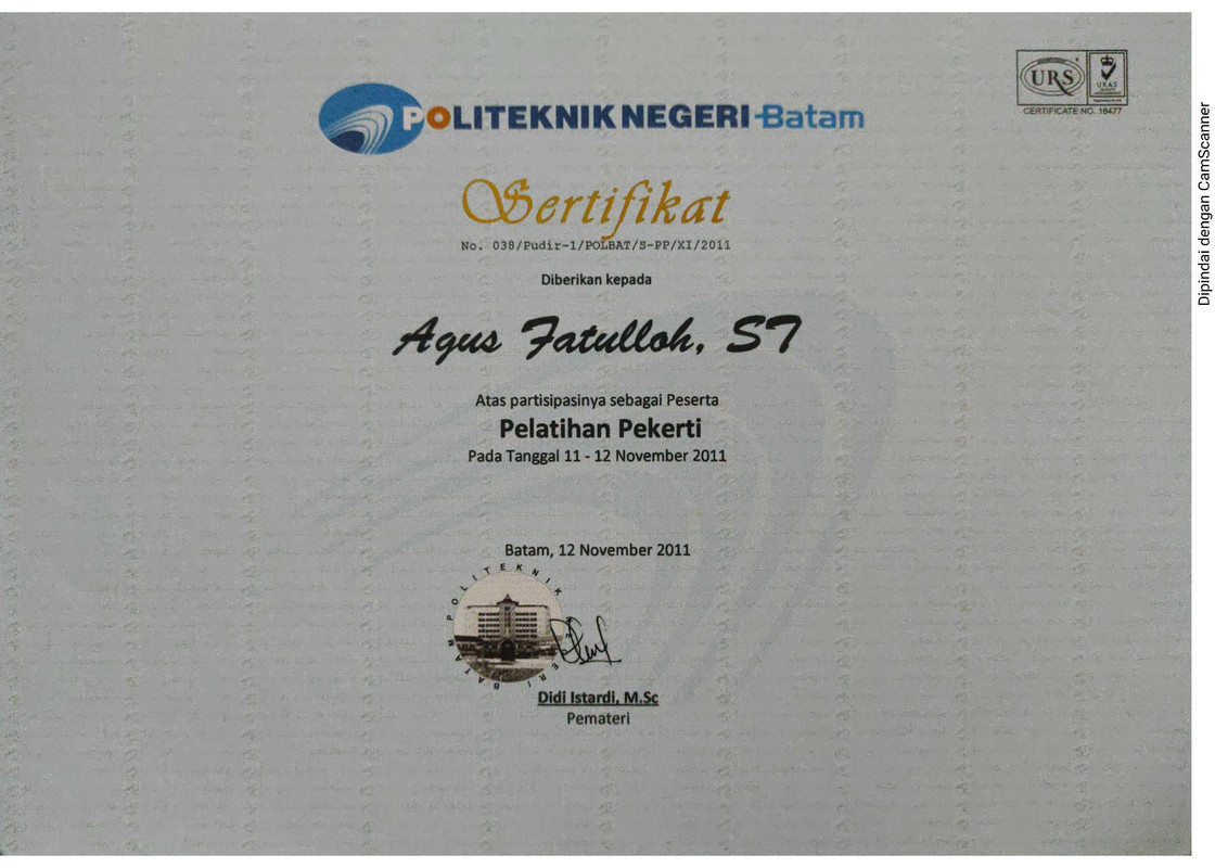 Saya Agus Fatulloh adalah salah satu tenaga pengajar di Politeknik Negeri Batam sejak tahun 2007 s.d sekarang. Bidang keilmuan yang saya ajarkan berhubungan dengan Jaringan Komputer, Sistem Operasi, dan Organisasi Komputer, dan Keamanan Komputer.